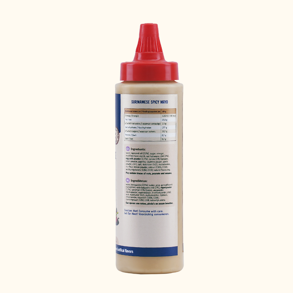 Creamy, smooth, and with just the right kick of heat, this Surinamese-style mayo adds a distinct spice to fries, sandwiches, or anything that needs a fiery twist.